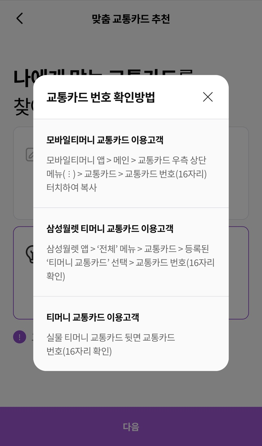 ✔ 티머니 카드 등록 완료